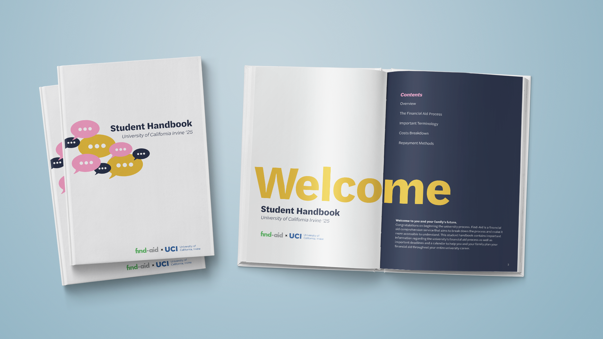 The current method in which many universities handle their financial aid process is very confusing and inefficient, especially for first generation college students. There is a lack of resources using accessible language that help incoming freshmen and transfer students and their families navigate and understand the financial aid process at their respective universities. This leads to increased student debt and adds an unnecessary stressor in the application process and can deter students from pursuing higher education. This project aims to identify and examine design methods that foster self-efficacy for incoming college freshmen and transfer students to develop an understanding and navigation of the financial aid process from matriculation to graduation. This is achieved in three parts, a student handbook, an interactive planner, and a financial aid portal.